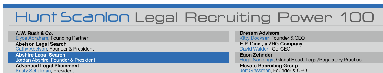 Jordan Abshire is the founder and managing member of Abshire Legal Search.
