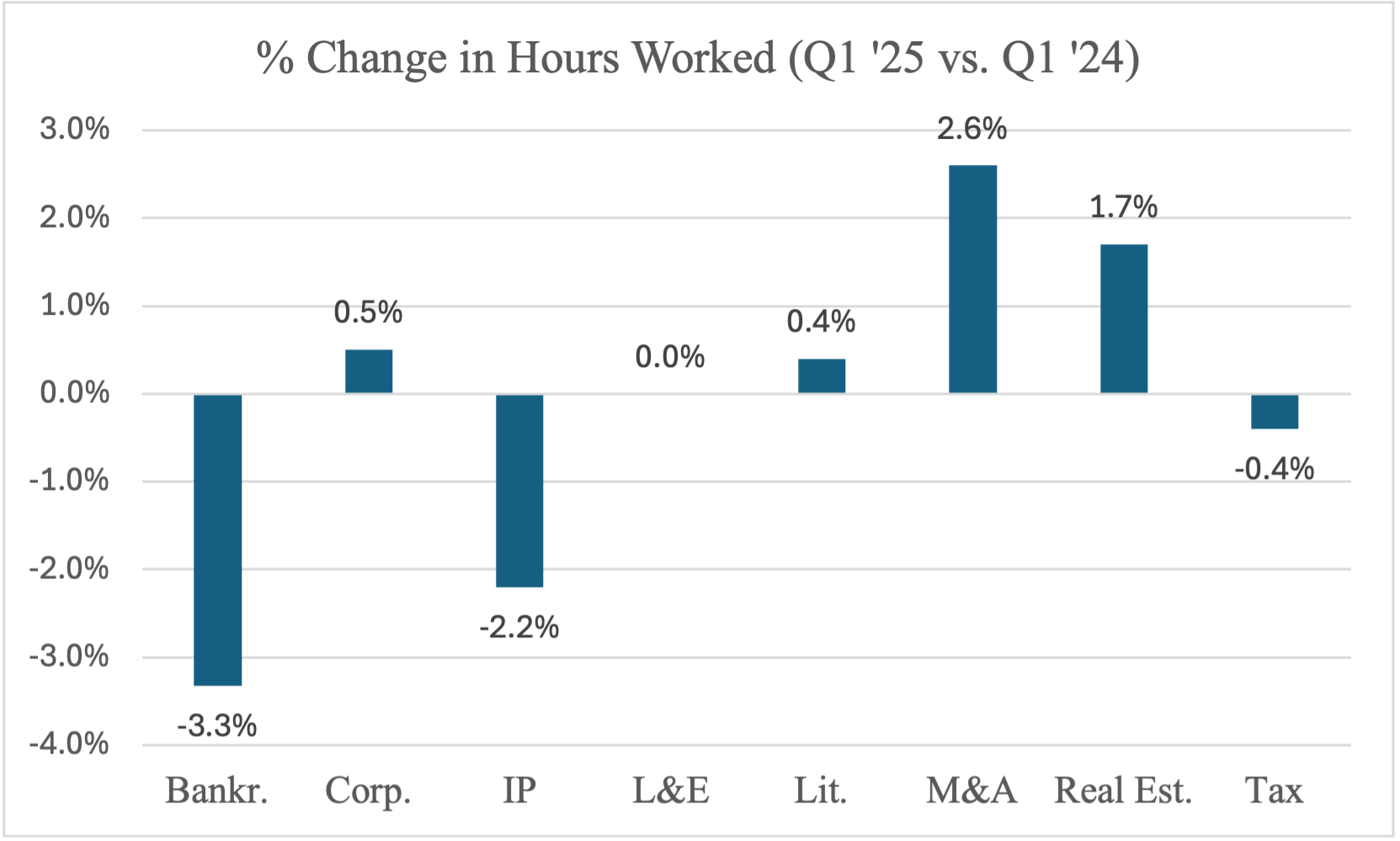Firms were able to grow rates substantially in Q1 2025, according to both Thomson Reuters' Q1 Law Firm Financial Index and Wells Fargo Legal Specialty Group's Q1 Survey, reporting average worked growth of 7.3% and average standard rate growth of 9.5%, respectively (Law Firm Financial Index Q1 2025 Executive Report “LFFI Report”, Thomson Reuters, 5/5/24 and Law Firm Demand Growth in Q1 Fell Short of Expectations: Report "WF Report", John Campisi, 4/29/25, American Lawyer).