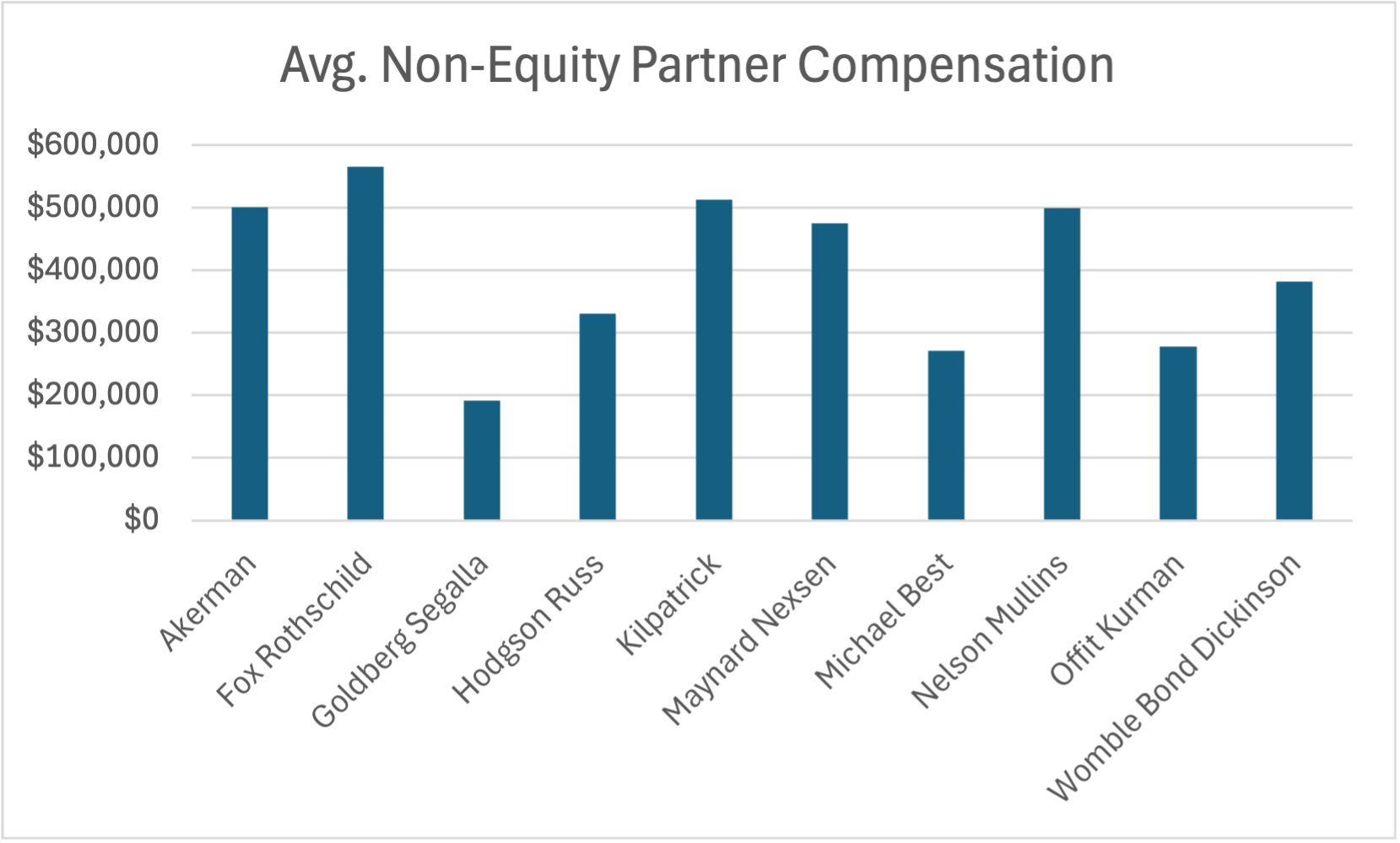 Avg. Non-Equity Partner Compensation May 20 Written By Jordan Abshire Avg. non-equity partner compensation at AmLaw 200 firms with an office in the Triad Back to Firm Financials Homepage Jordan Abshire