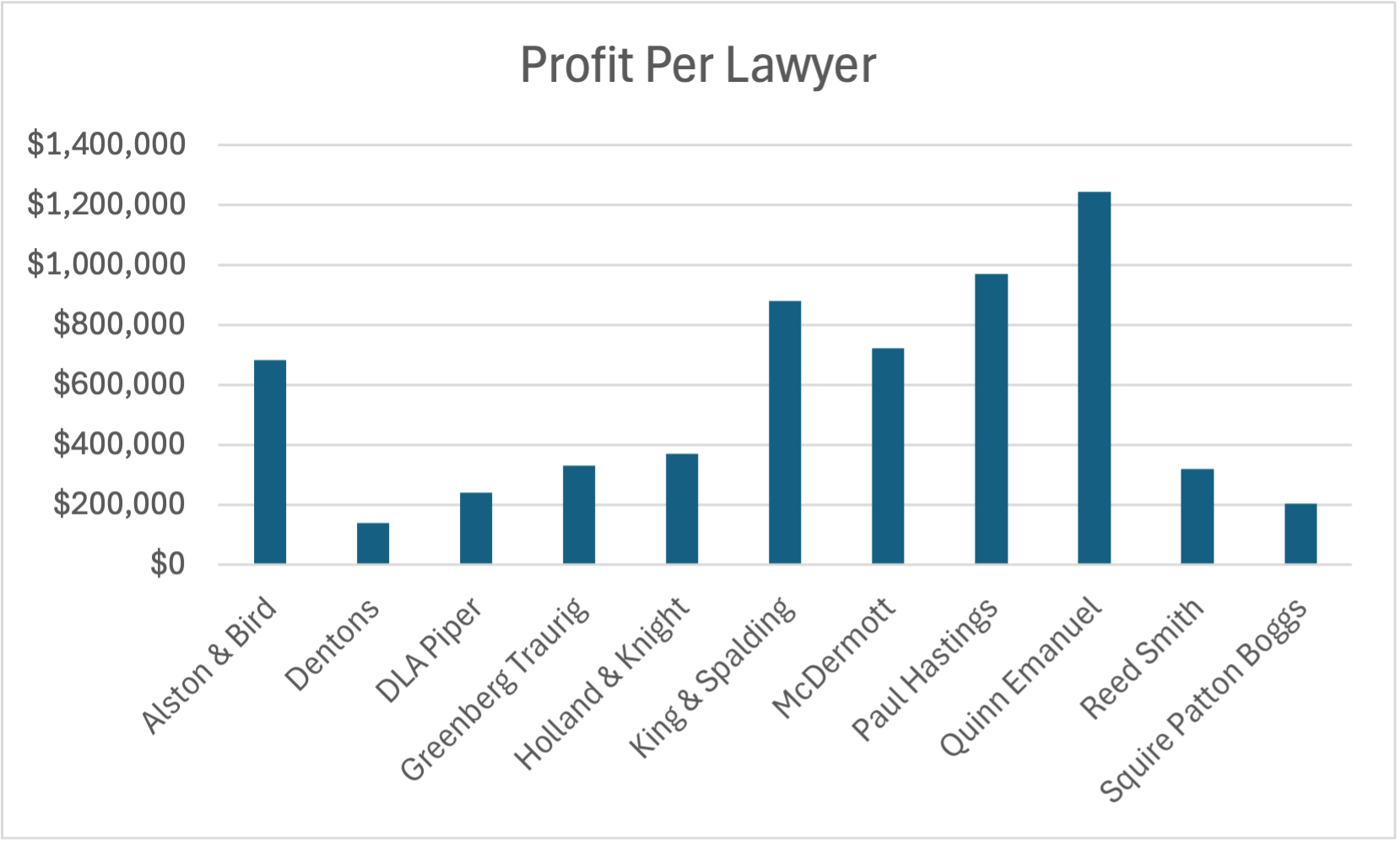 Profit Per Lawyer Jul 15 Written By Jordan Abshire Profit per lawyer at AmLaw 50 firms with an office in Atlanta Jordan Abshire