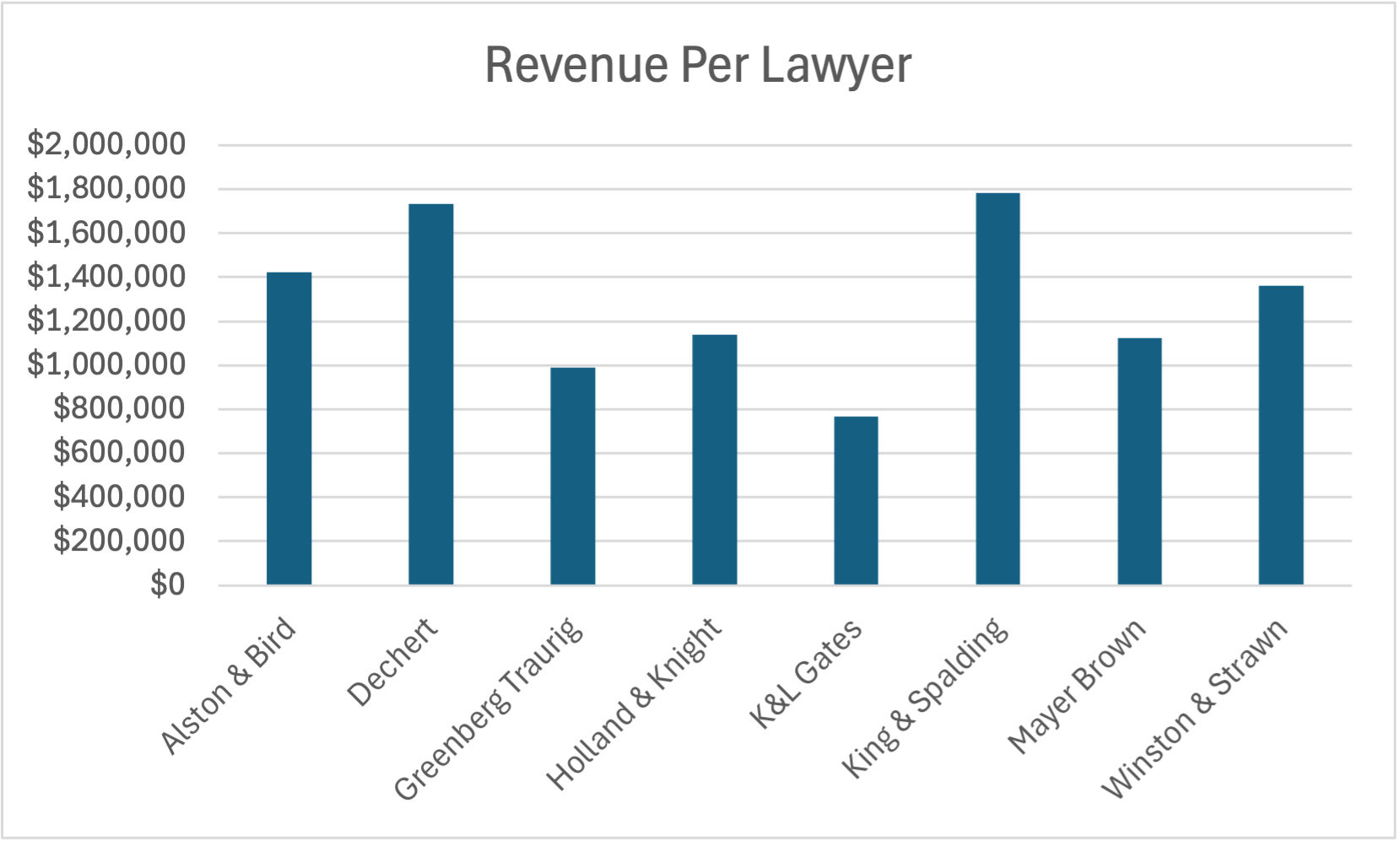 Revenue Per Lawyer Dec 15 Written By Jordan Abshire Revenue per lawyer at AmLaw firms 1-50 with an office in Charlotte Jordan Abshire