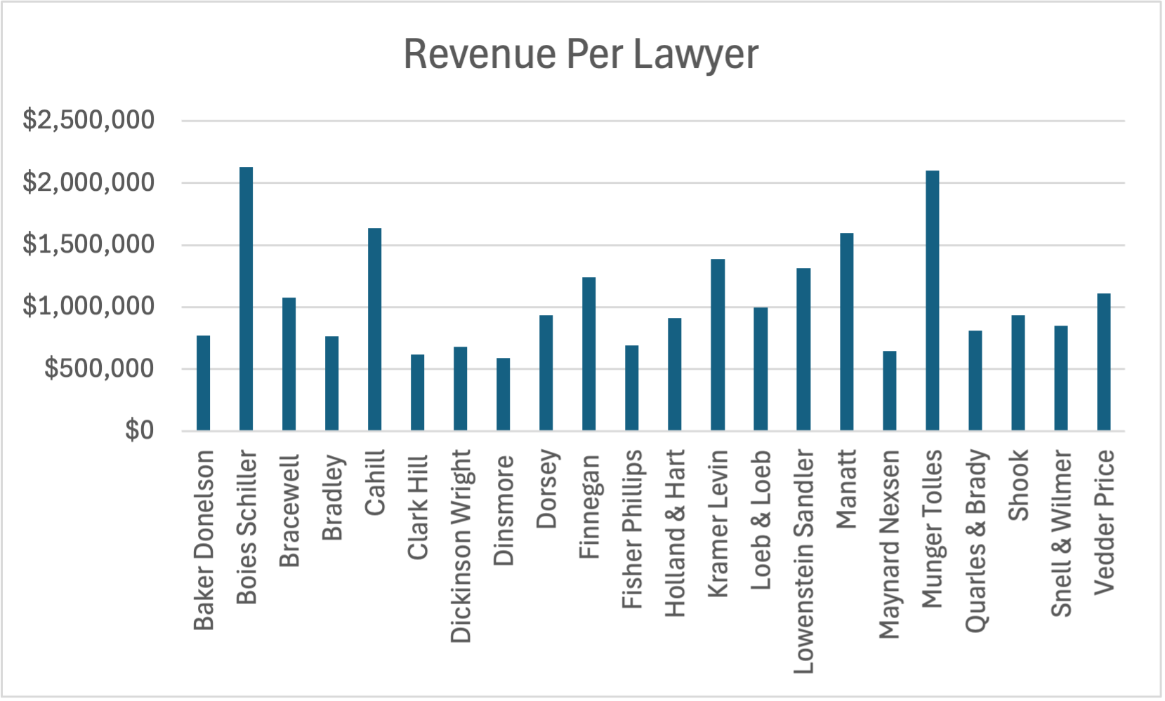 Revenue Per Lawyer Mar 11 Written By Jordan Abshire Revenue per lawyer at AmLaw firms 101-125 with an office in D.C. Jordan Abshire