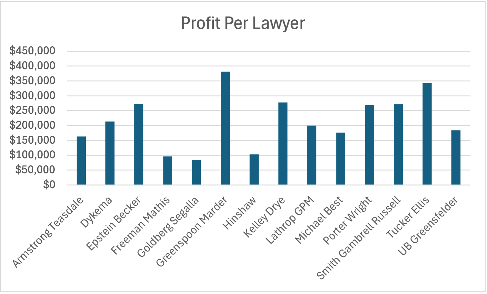 Profit Per Lawyer Jul 15 Written By Jordan Abshire Profit per lawyer at AmLaw firms 151-200 with an office in Chicago Jordan Abshire