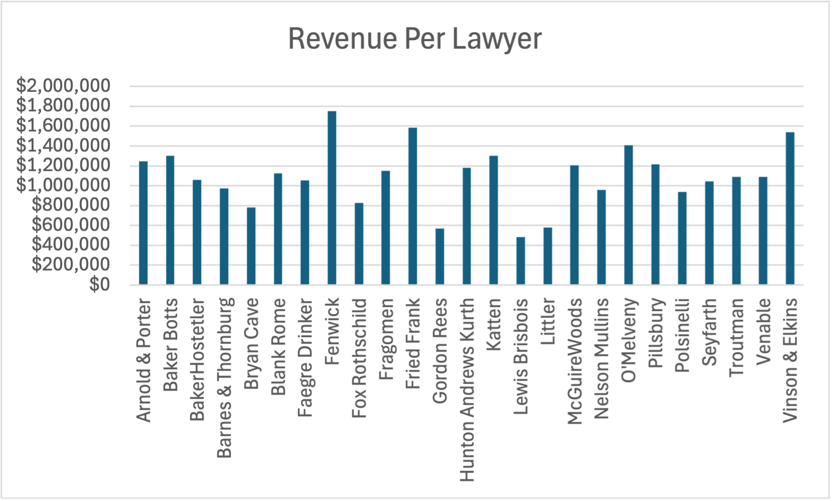 Revenue Per Lawyer Mar 11 Written By Jordan Abshire Revenue per lawyer at AmLaw firms 51-75 with an office in D.C. Jordan Abshire